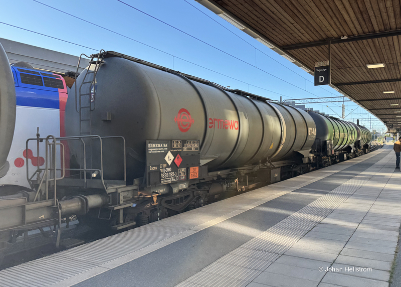 Ermewa Zans F-ERSA 33 87 7837 190-0 på Göteborg-Kville samma morgon. Notera det äldre Ermewa-Sati-märket på cisternen.
