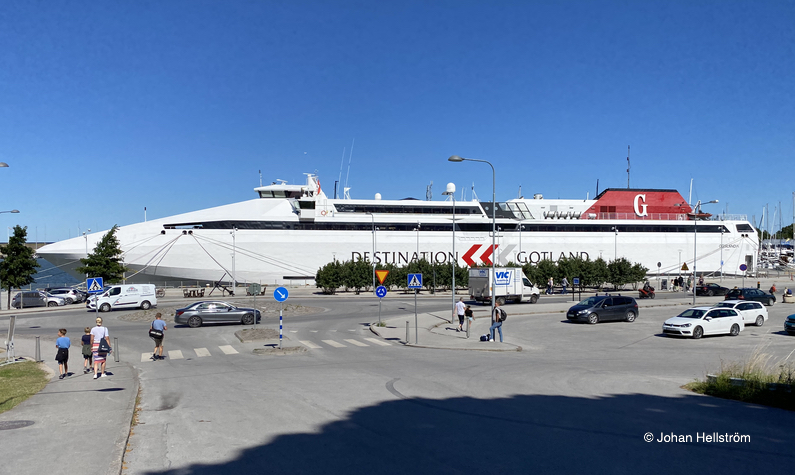 Visby i hemmahamnen den 23 juli 2020. Samtidigt håller m/s Visborg på att lägga ut...