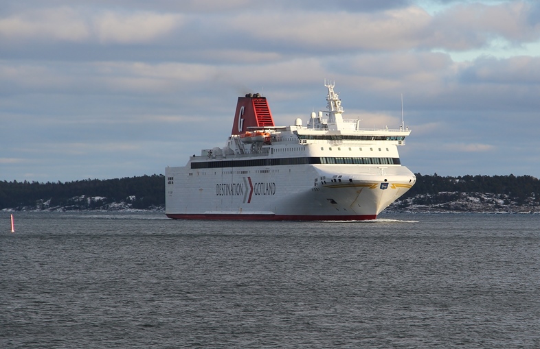 Nya m/s Visborg på väg mot Nynäshamn den 16 juli 2019.