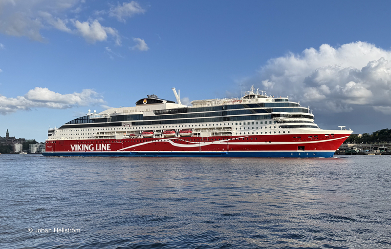 Viking Cinderella utanför Kvarnholmen på väg mot Mariehamn och Helsingfors den 20 augusti 2025.