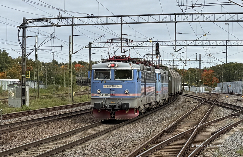 Hector Rail 143.046 Prins August och 143.054 Halfdan Snälle med säsongens första "fliståg" 40103 i Älvsjö den 6 oktober 2025.