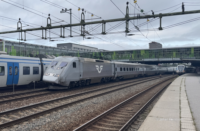 Kort därpå passerade VR Snabbtåg X74 74002 Ingvar på väg mot Göteborg.