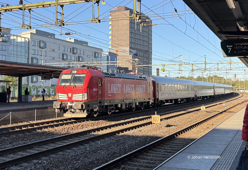 SJ EuroNight 346 i Älvsjö den 6 september 2025.