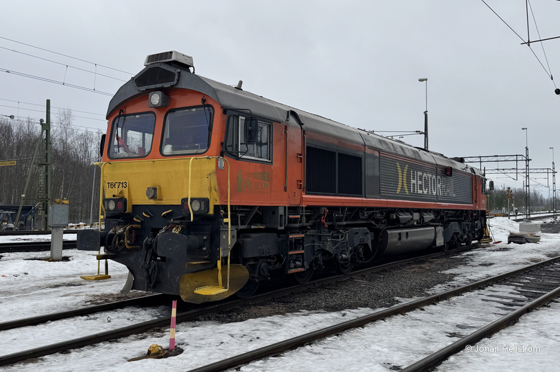 Tre bilder av T66 713 i Borlänge den 1 februari 2019.
