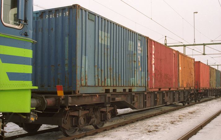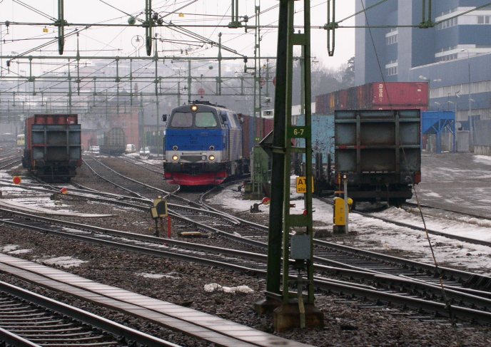 1409 med containertåg på Uppsala godsbangård den 29 mars 2007. Inlandsgods