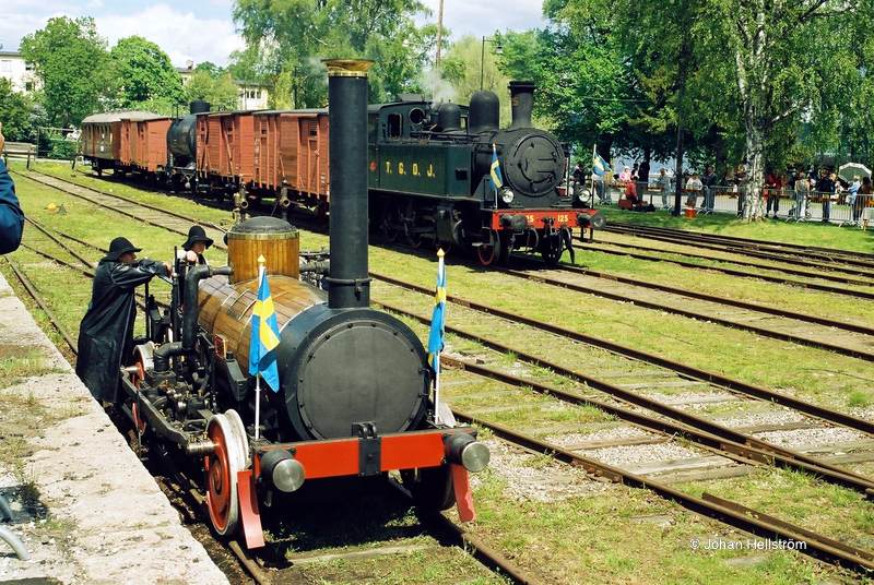 Ångloken Förstlingen II och TGOJ Y3a 125 i Nora samma dag.