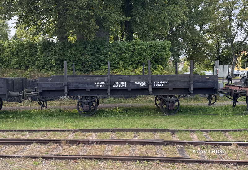 En av NBVJ:s fina godsvagnar försedd med texten Vagnut-hyrnings Aktiebol. Stockholm. Uthyr alla slags gods-vagnar.