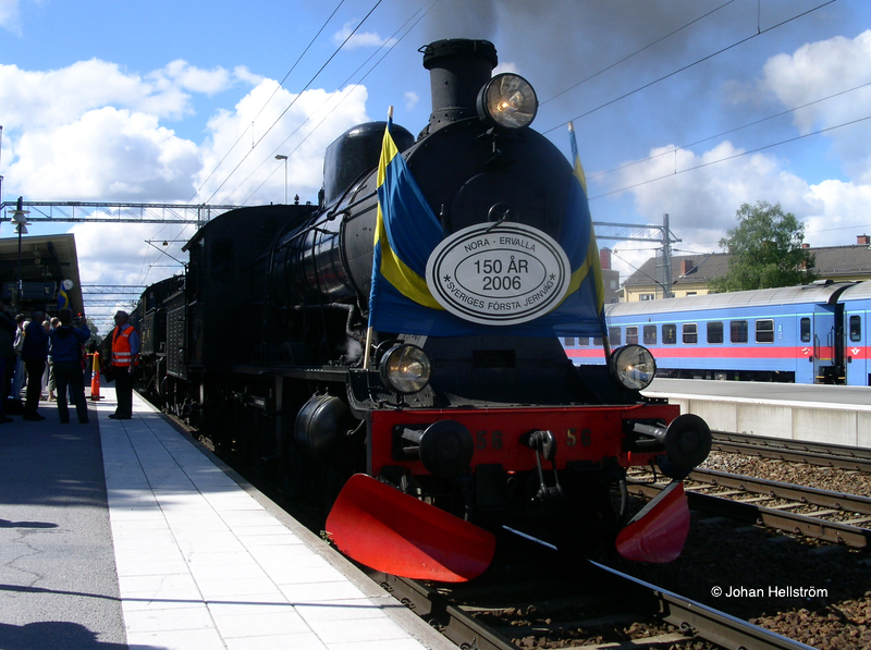 Den 5 juni 2006 firades järnvägens 150-årsjubileum i Nora. Ett ångloksdraget extratåget med Kungen och andra honoratiatories anordnades från Örebro till Nora. Tåget drogs av SWB H3 56 i koppel med SJ Sb 1306, som ses här på Örebro C kort före avgång.